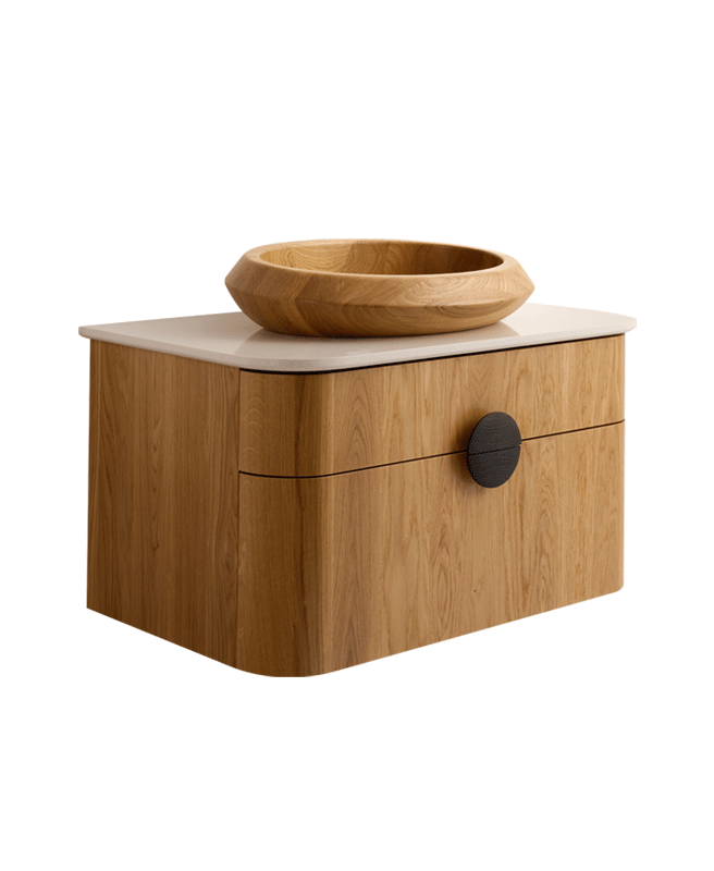 Pure Wood SI is the essence of oak wood enclosed in a minimalist form. The collection was created for users who seek peace and authenticity in their bathrooms. The central point here is the contrast between the raw geometry of the outer shell and the organic, “soft” interior of the washbasin. This design was awarded the Diament Meblarstwa 2026 title, proving that wood in the bathroom is synonymous with luxury and durability.